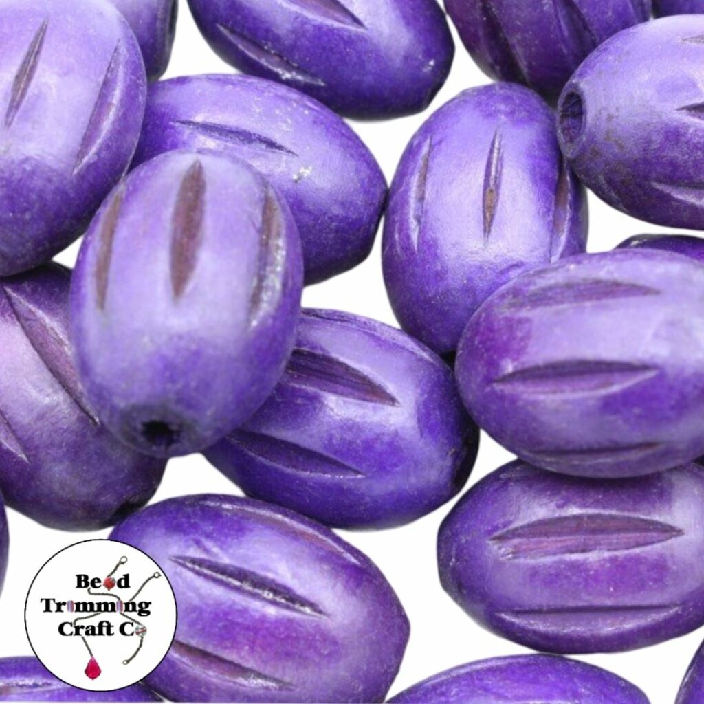 Wood Bead – Oval – Grated – 30mm – Purple.