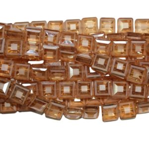 14mm Flat Square / Textured – Lt Col Topaz – 30cm Strand