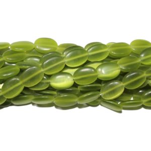 Cats Eye – 14mm – Oval – Olive – 38cm Strand