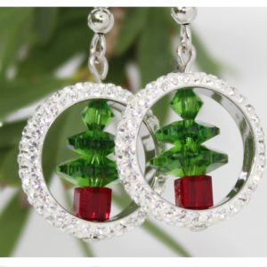 Crystal Pave Ring / Tree Earring – Crystal / Fern Green