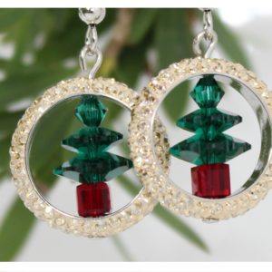 Crystal Pave Ring / Tree Earring – Golden Shadow / Emerald
