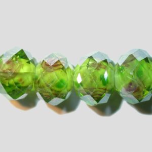 Rondelle – Floral Faceted – 10mm – Light Green – 16cm Strand