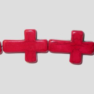 Cross – Howlite – 30mm – Red – 40cm Strand