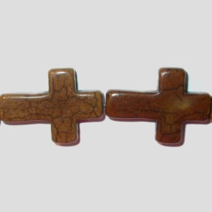 Cross – Howlite – 30mm – Brown – 40cm Strand