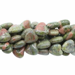 Unakite – Heart Bead – 12mm – 37cm strand