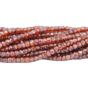 Cubic Zirconia – 3 x 2mm Faceted – 37cm Strand – Red Magma
