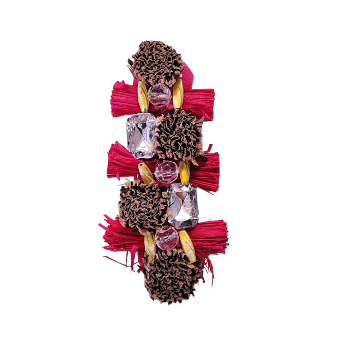 Motif consists of raffia & rhinestones.