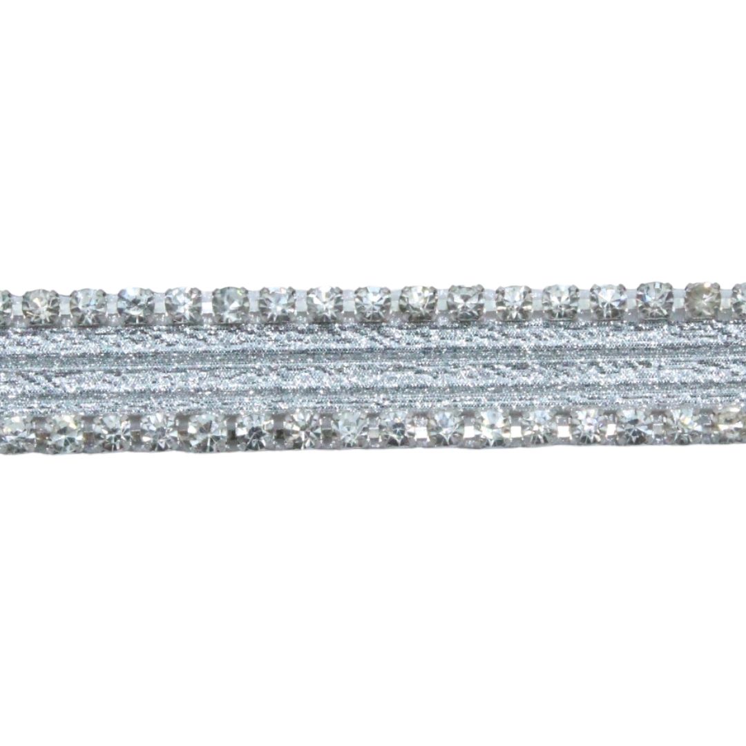 10mm – 2 Row Crystal / Silver – Heat Fix – Price per centimeter.