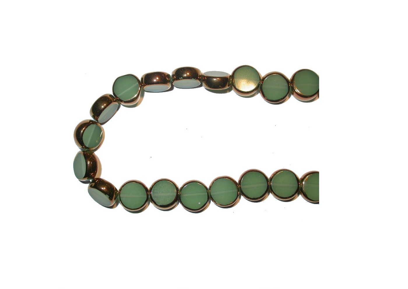 10mm Flat Coin / Gold Surround – 31cm Strand. Please contact us to purchase individual pieces.