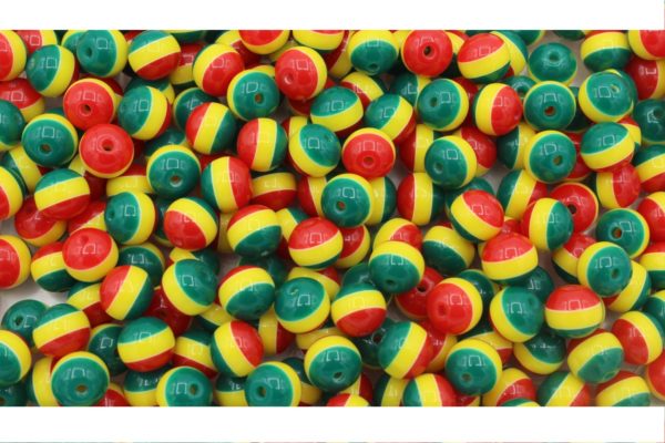 10mm – Stripe – Red / Yellow / Green. Plastic bead.
