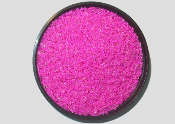 11/0 Bugle – Pink Colourlined – Price per gram. Hex Cut. Approx 2 x 2mm in size. Glass beads. Colourlined colours / colour lining the hole in bead. Please contact us to purchase colours not displayed.