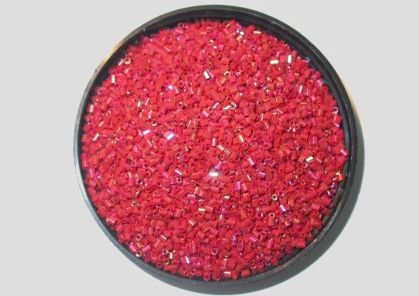 11/0 Bugle – Red OP AB – Price per gram. Hex Cut. Approx 2 x 2mm in size. Glass beads. Solid AB colours / 1 side rainbow coated. Please contact us to purchase colours not displayed.