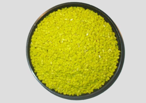 11/0 Bugle – Yellow Opaque – Price per gram. Hex Cut. Approx 2 x 2mm in size. Glass beads. Solid colour. Please contact us to purchase colours not displayed.