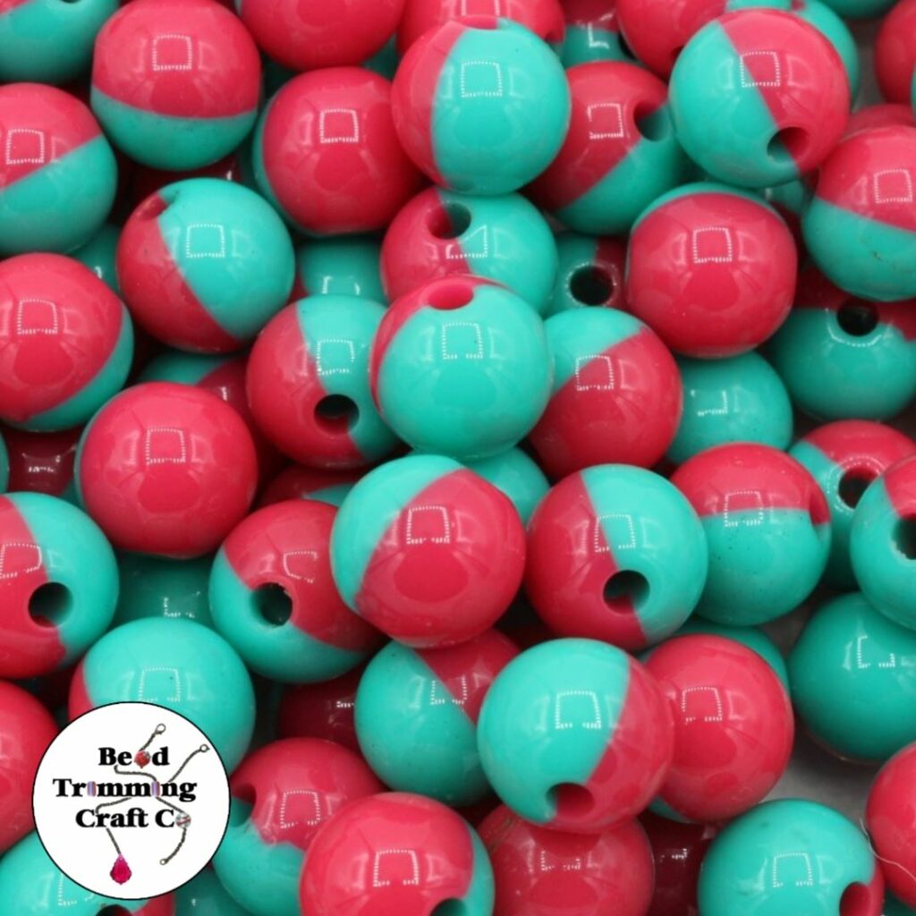 Round Bead – 12mm – 2 Colour – Pink / Teale.