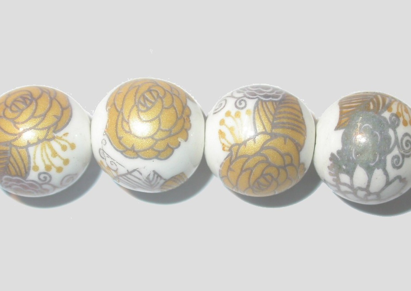 12mm Patterned Ceramic – 20cm Strand. 12mm size. Round Ceramic Bead. Floral patterned. Please contact us to purchase individual pieces.