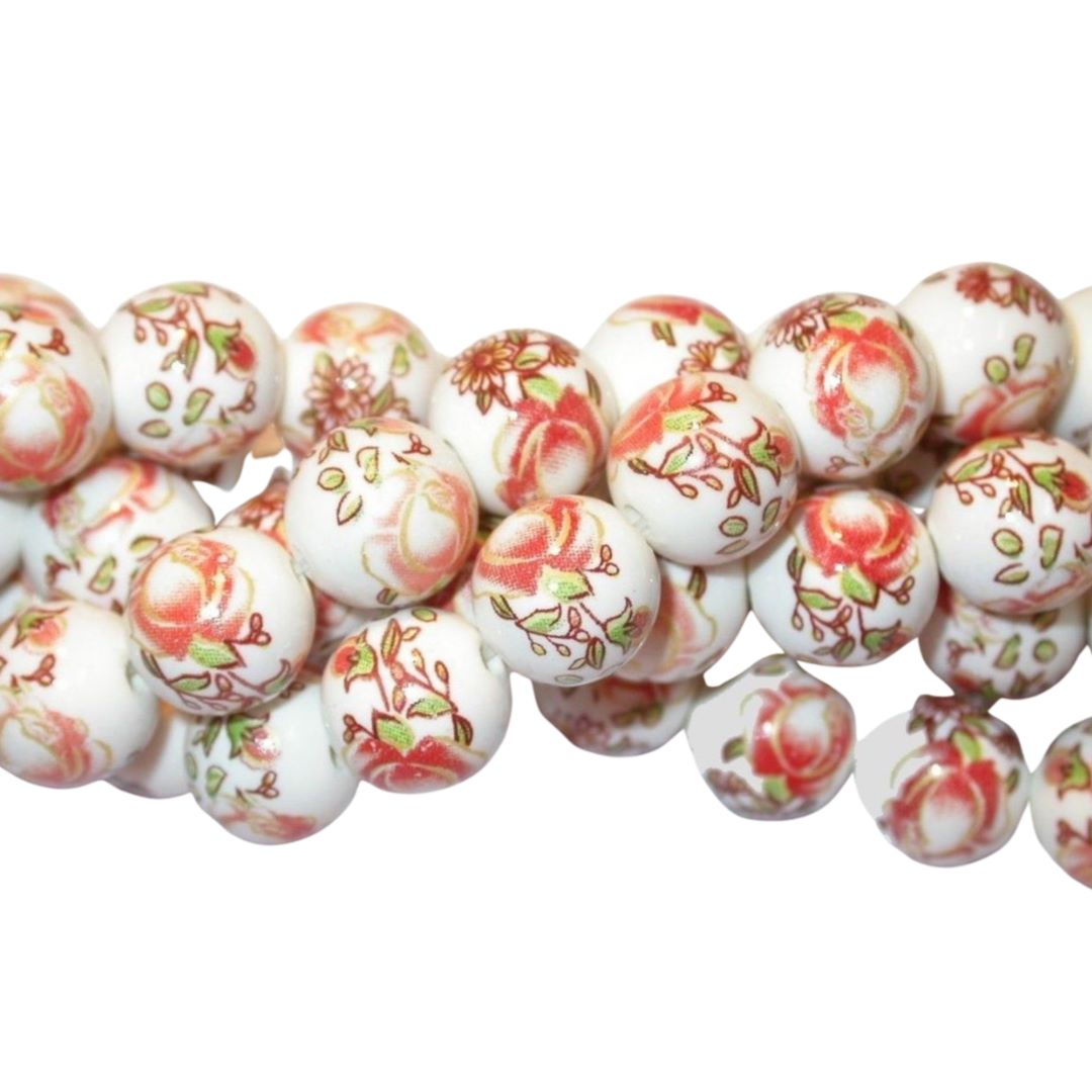12mm Patterned Round – 39cm Strand – H. Glass bead. Quality product.