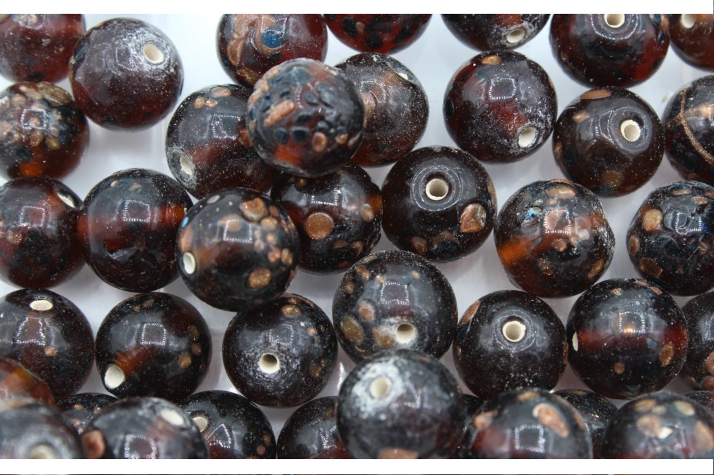 12mm Round – Brown Speckled. Glass Bead. Made in India.