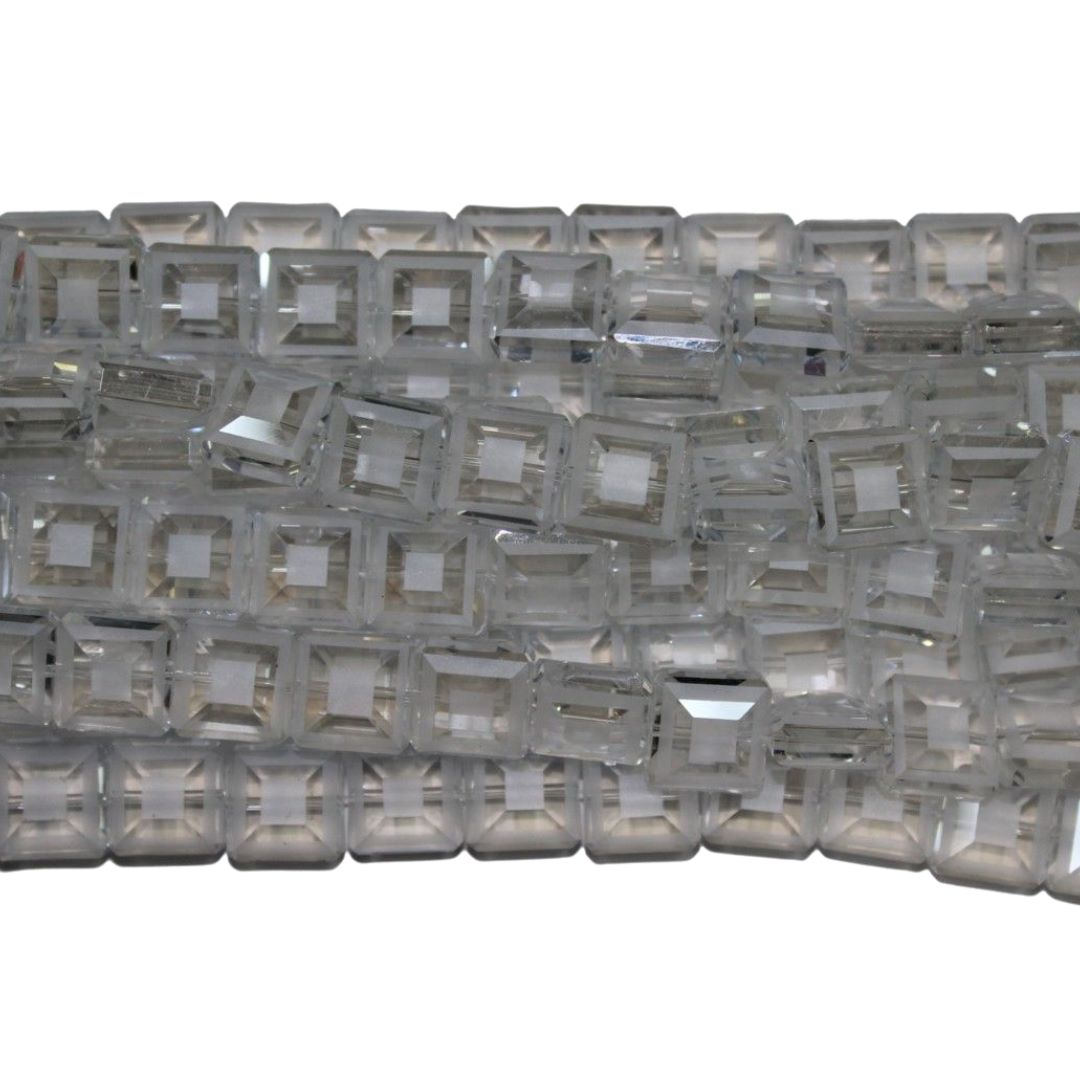 14mm Flat Square / Textured – Clear – 30cm Strand. Flat Square Shaped Glass Bead.
