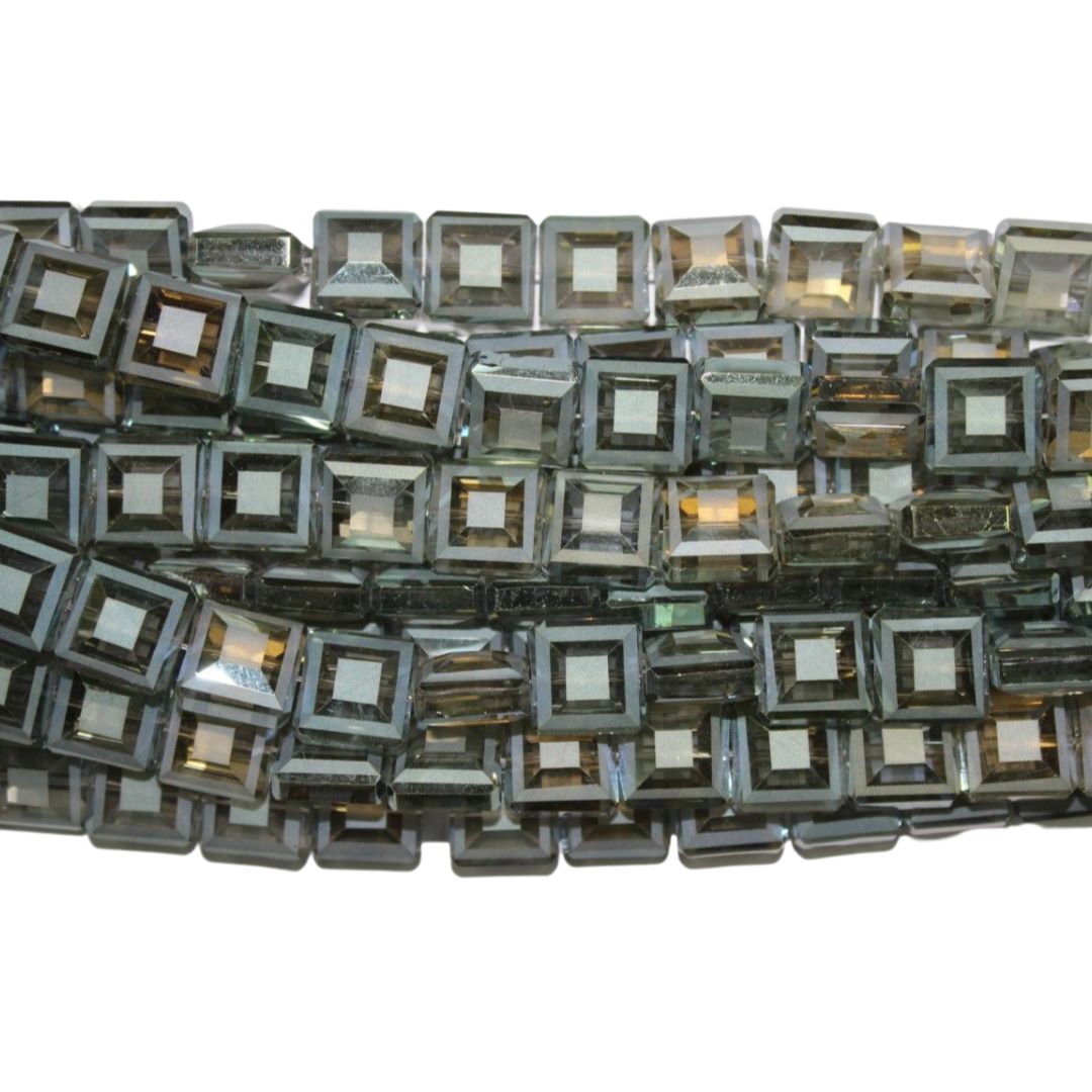 14mm Flat Square / Textured – Erinite – 30cm Strand. Flat Square Shaped Glass Bead.