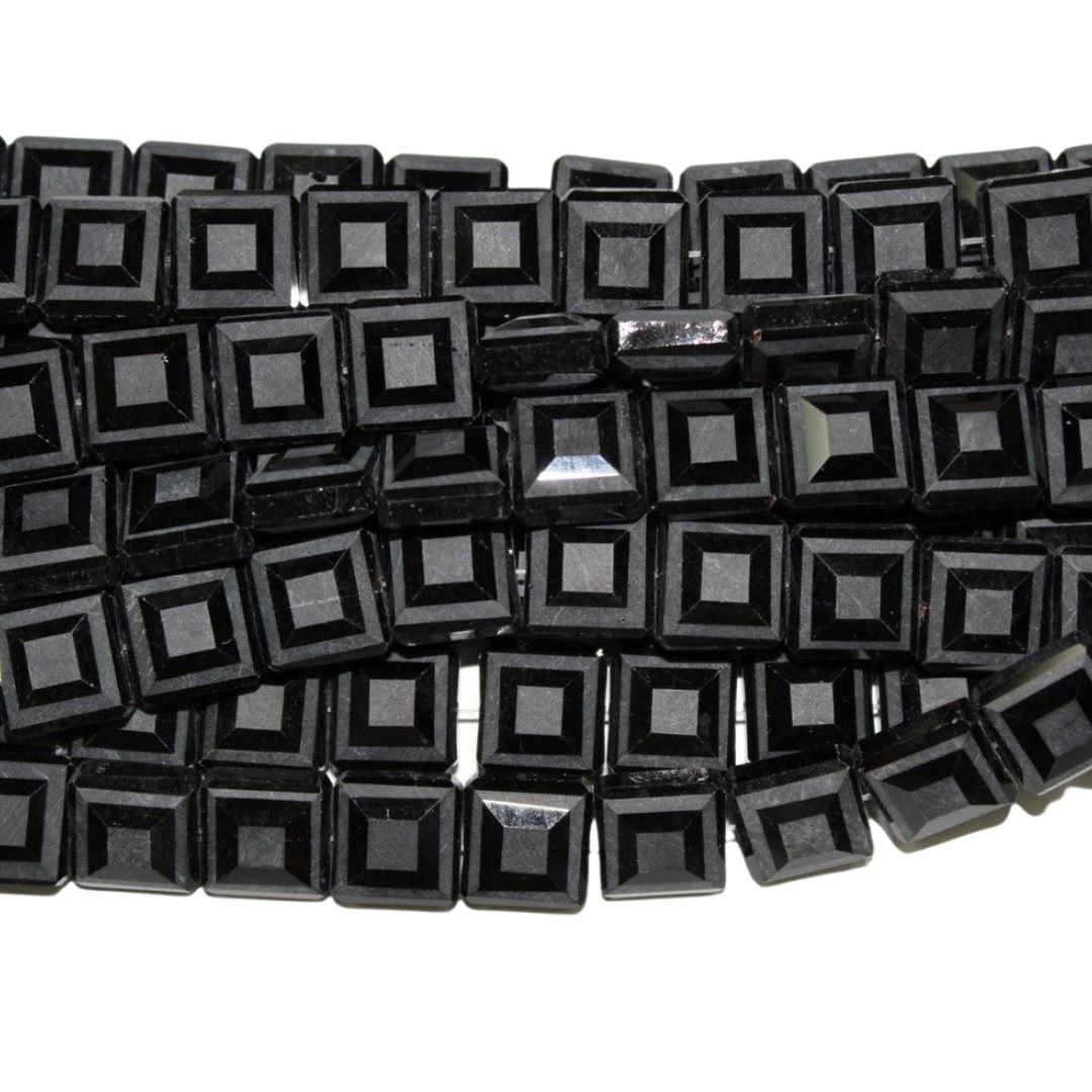 14mm Flat Square / Textured – Jet – 30cm Strand. Flat Square Shaped Glass Bead.