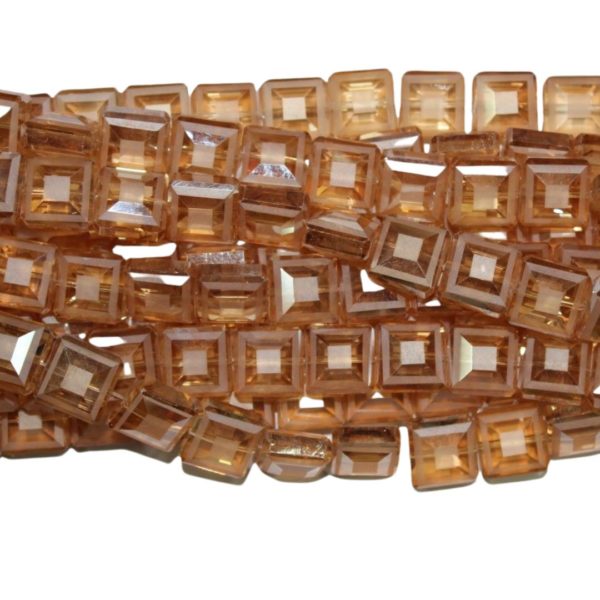 14mm Flat Square / Textured – Lt Col Topaz – 30cm Strand. Flat Square Shaped Glass Bead.
