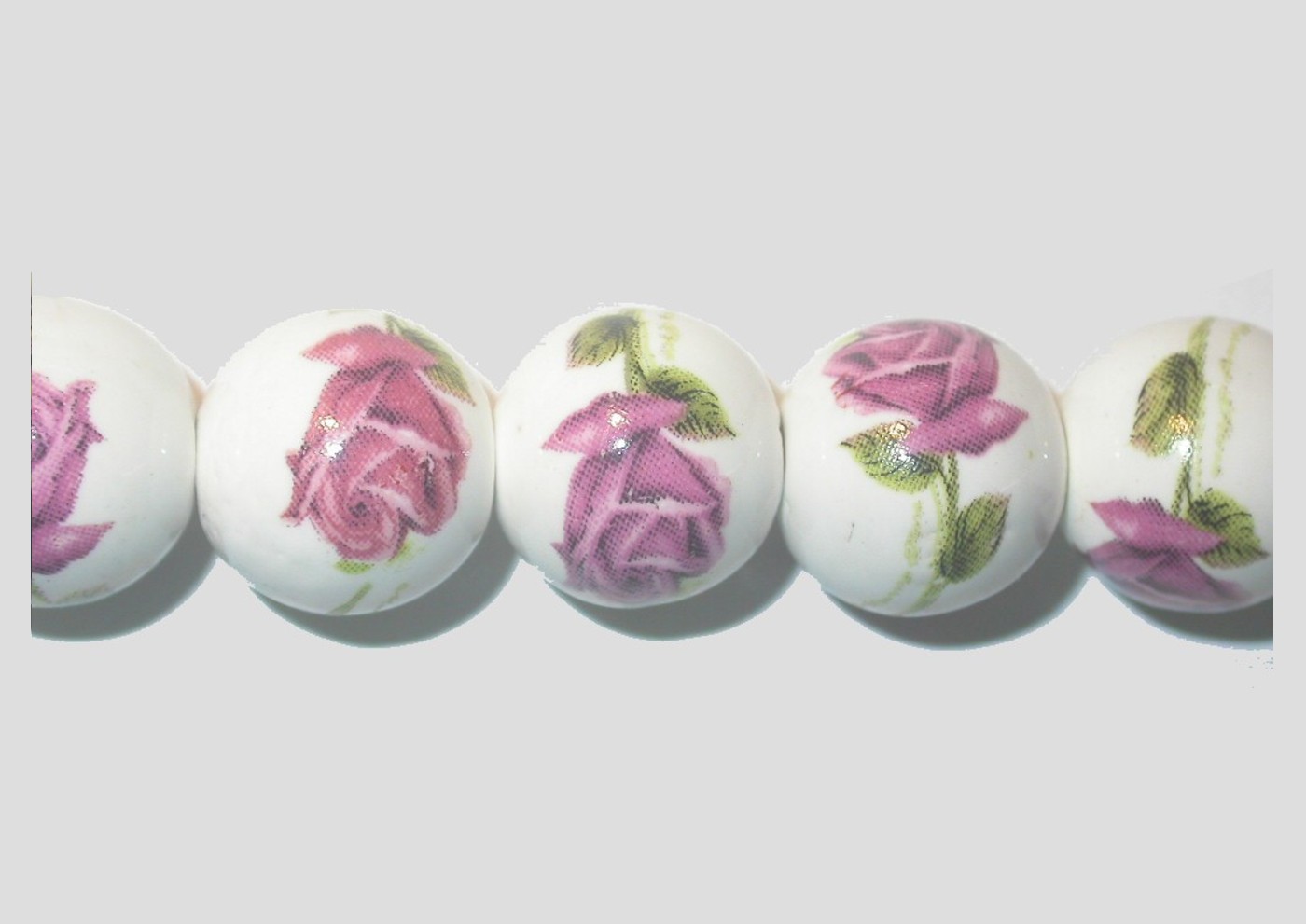 14mm Patterned Ceramic – 37cm Strand. 14mm size. Round Ceramic Bead. Floral patterned. Please contact us to purchase individual pieces.