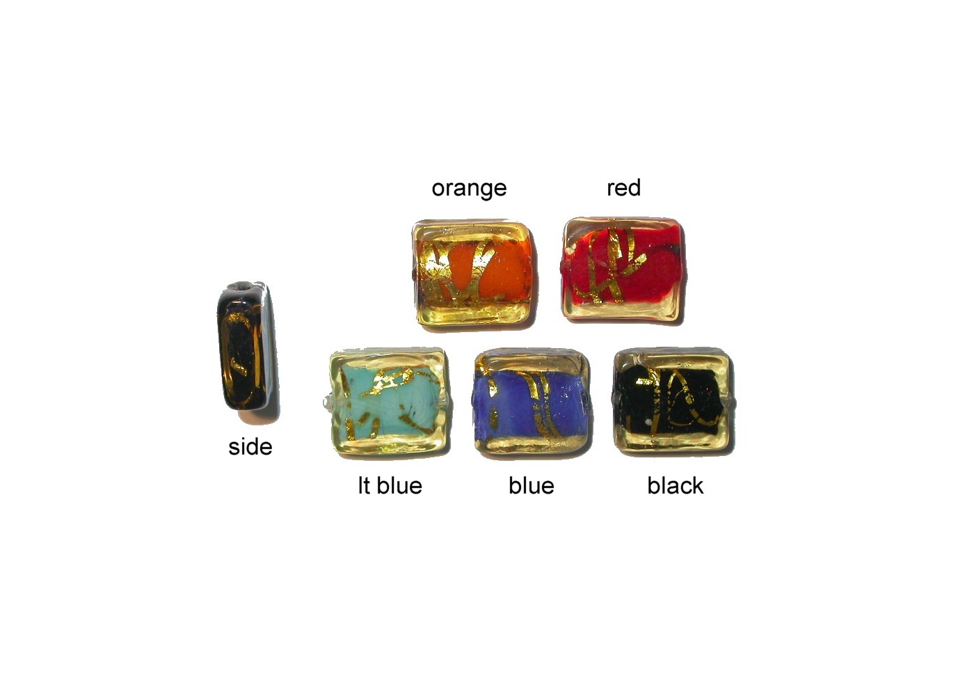 15mm Colourlined Flat Square With Gold Foil Stripes. Glass Beads.