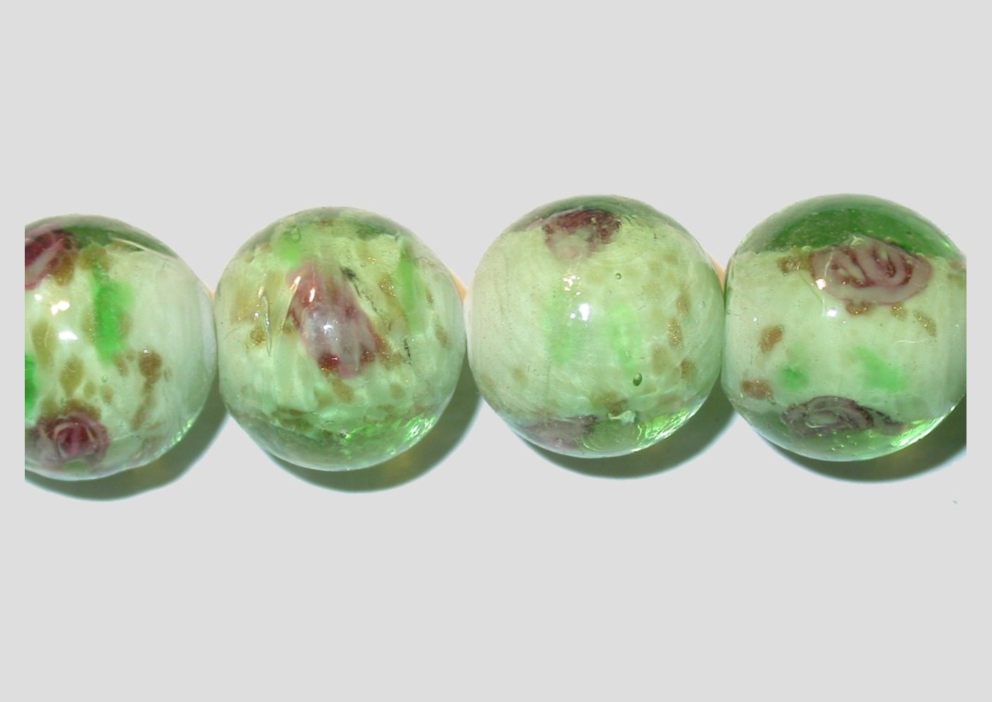 15mm Floral Round – 18cm Strand. Approx 15mm size. Round Shaped Glass Bead. Please contact us to purchase individual pieces.