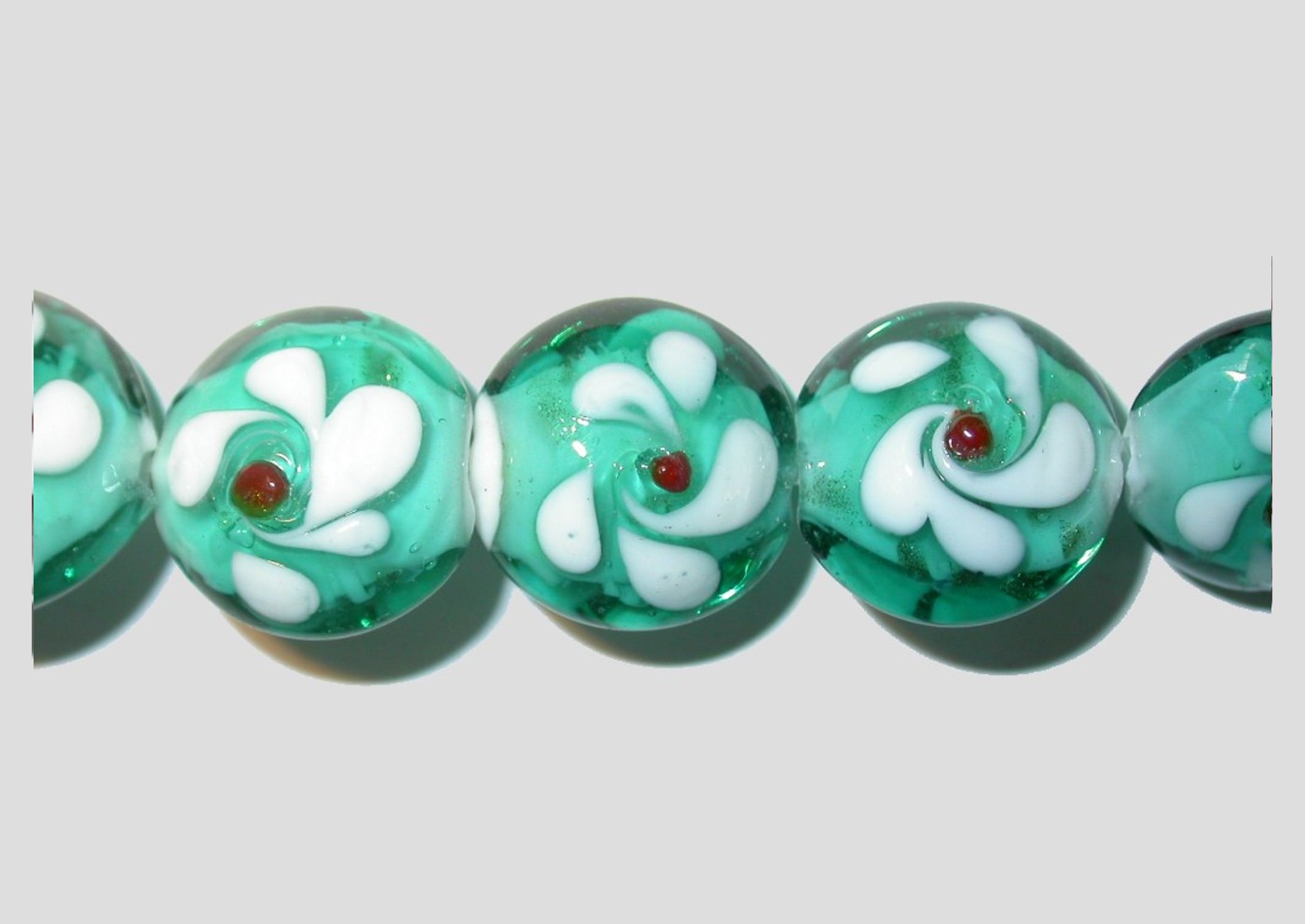 16mm Floral Coin – 18cm Strand. Glass Bead. Please contact us to purchase individual pieces.