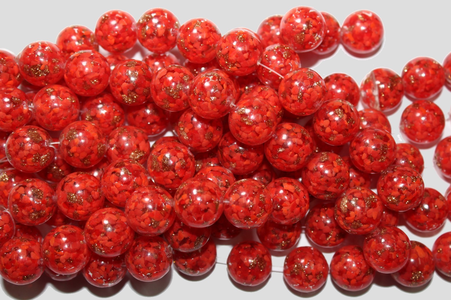 16mm Lampwork – Gold Foil – Red – 18cm Strand. Gold foil flakes. Glass bead. ‘A’ Quality. Please contact us to purchase individual pieces.
