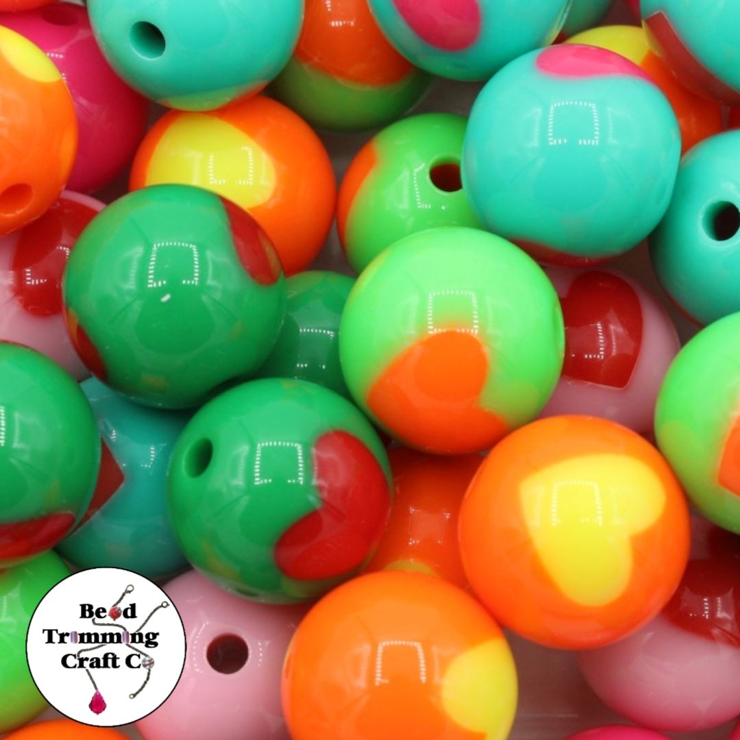 Round Bead – Heart – 16mm – Mix Colour.