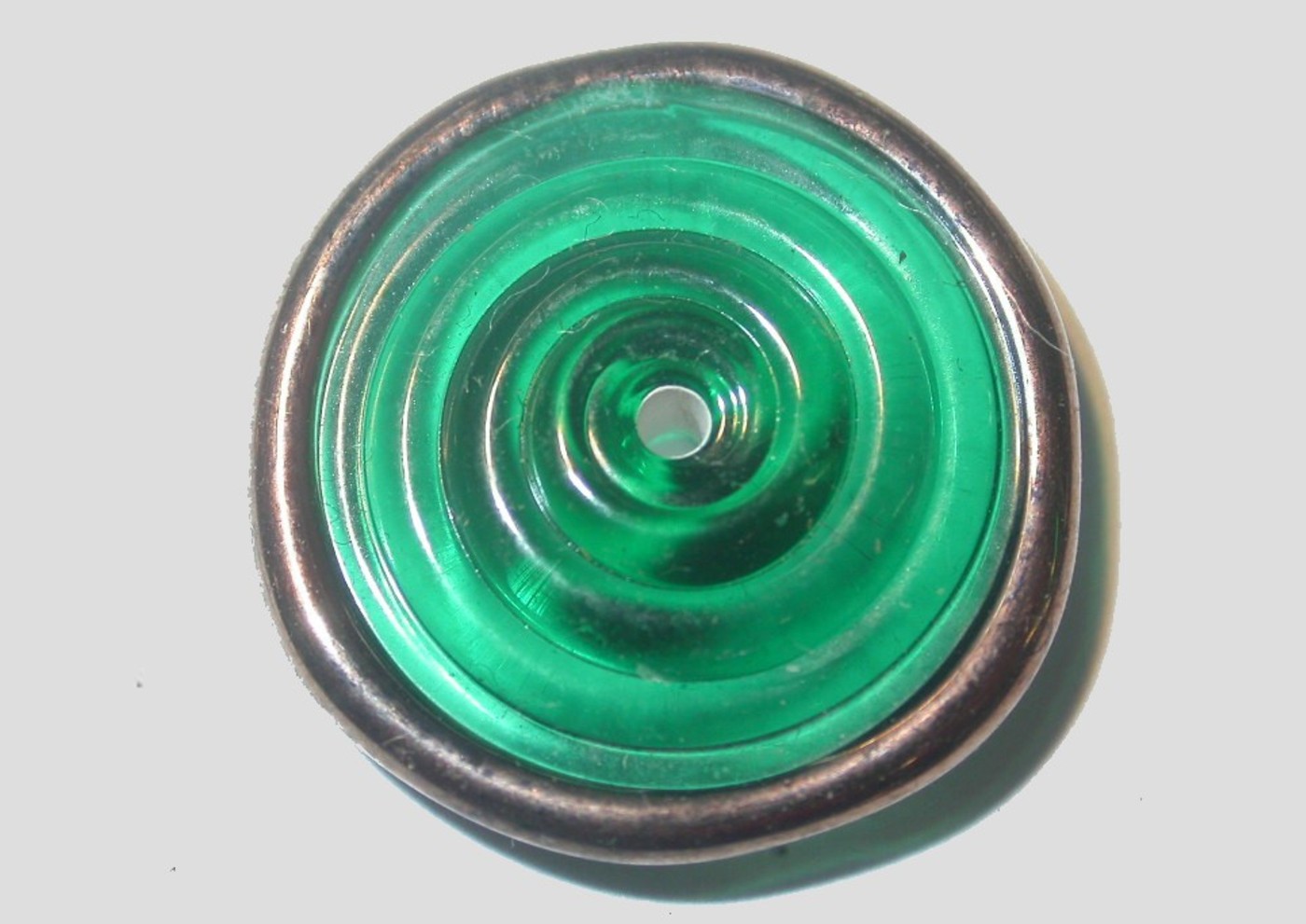 17mm Czech Discs – Click here to view all colours. Hand made Czech Lampwork glass bead. Quality product. Made in the Czech Republic. Flat coin shape. Hole in center. Copper foil surrounding bead.