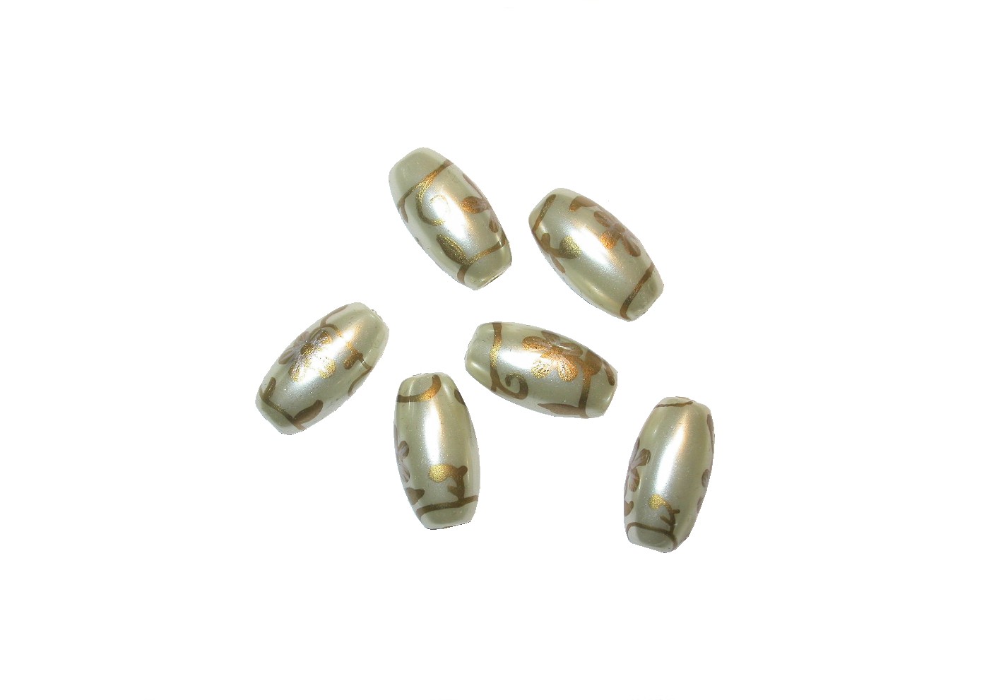 19 x 10mm Floral Design – Gold. Glass Pearl.
