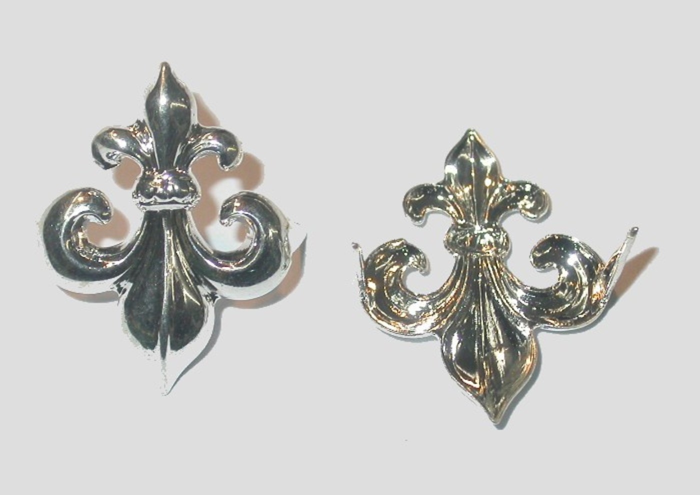 20mm – Fleur De Lys With Studs. American made. Raw Brass. Quality product. Silver Plated.