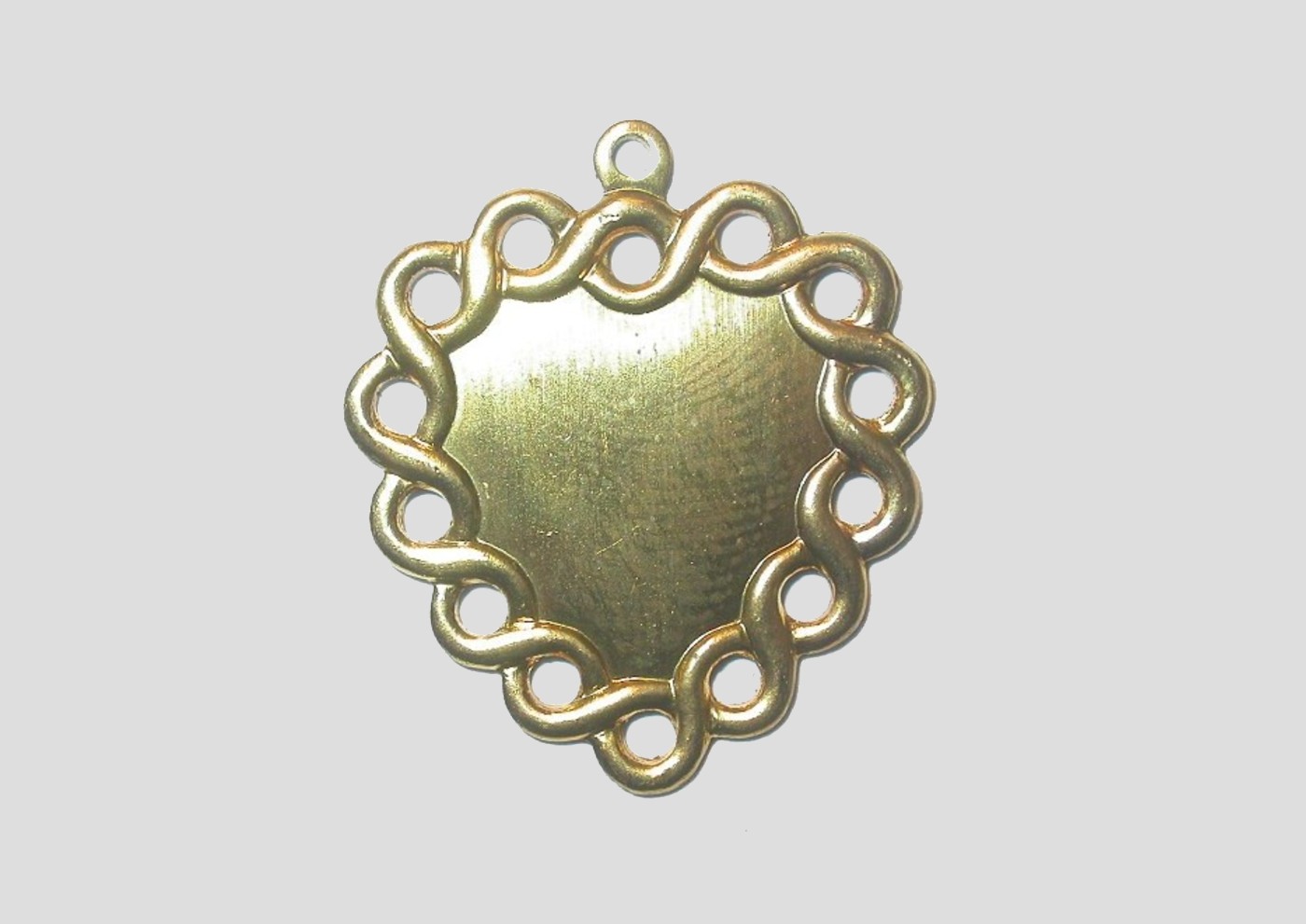 23mm – Heart – Side Holes. American made. Raw Brass. Quality product. Price per piece.