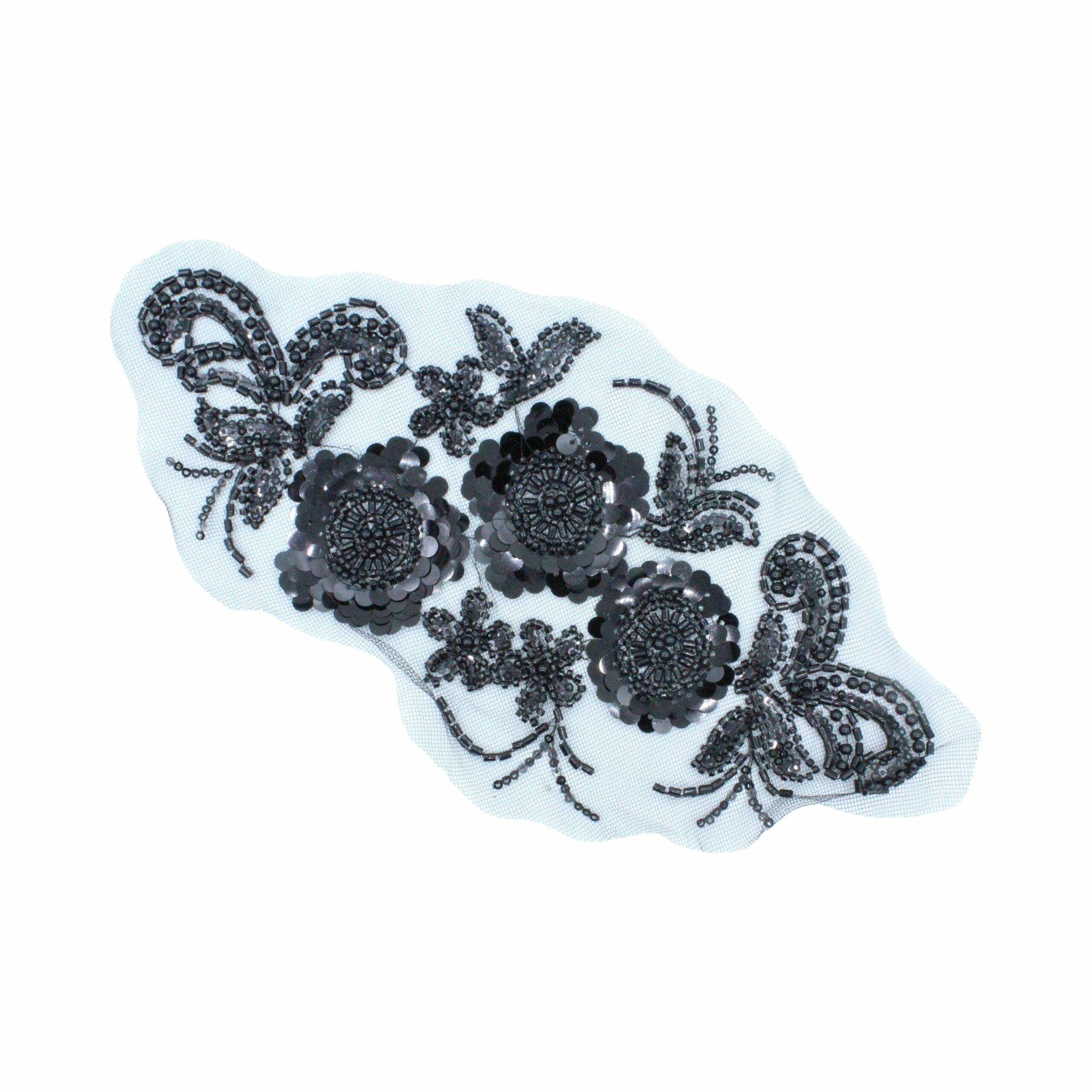Embellished with Sequins, Glass Bugle Beads & Pearls.