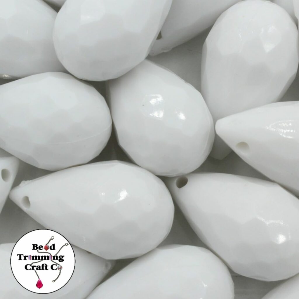 Drop – Faceted – 33 x 20mm – White.