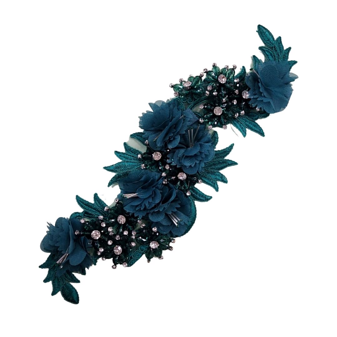 Motif – Combination of Glass Bugle and Seed beads, Crystals, Plastic Drops & Organza Flowers.