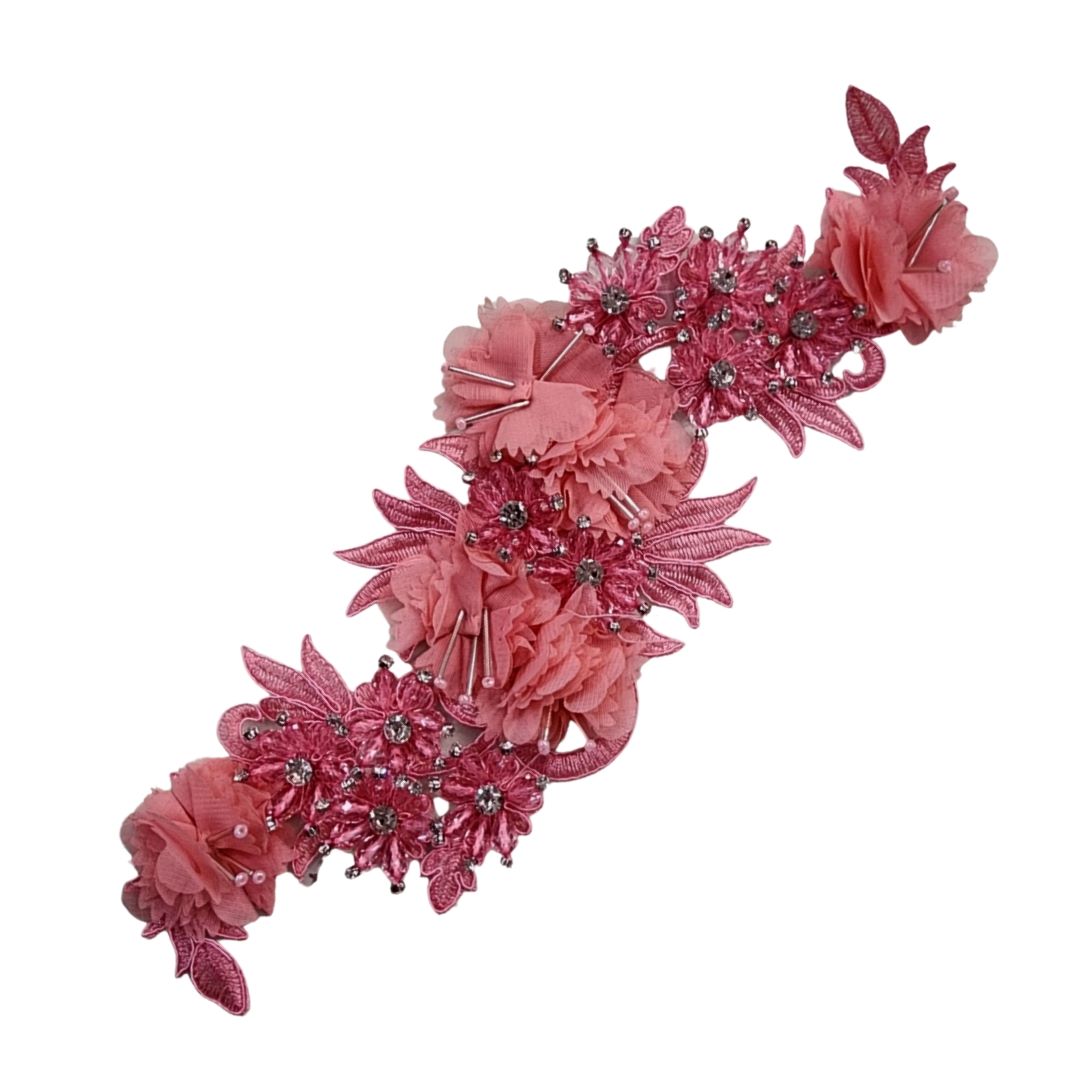 Motif – Combination of Glass Bugle and Seed beads, Crystals, Plastic Drops & Organza Flowers.