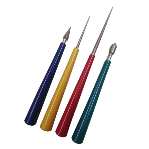 4 Piece Bead Reamer Set. Perfect for softening rough edges. Use to smooth and enlarge bead holes. 70 x 9mm Handle length. 9cm – 14cm tool length.