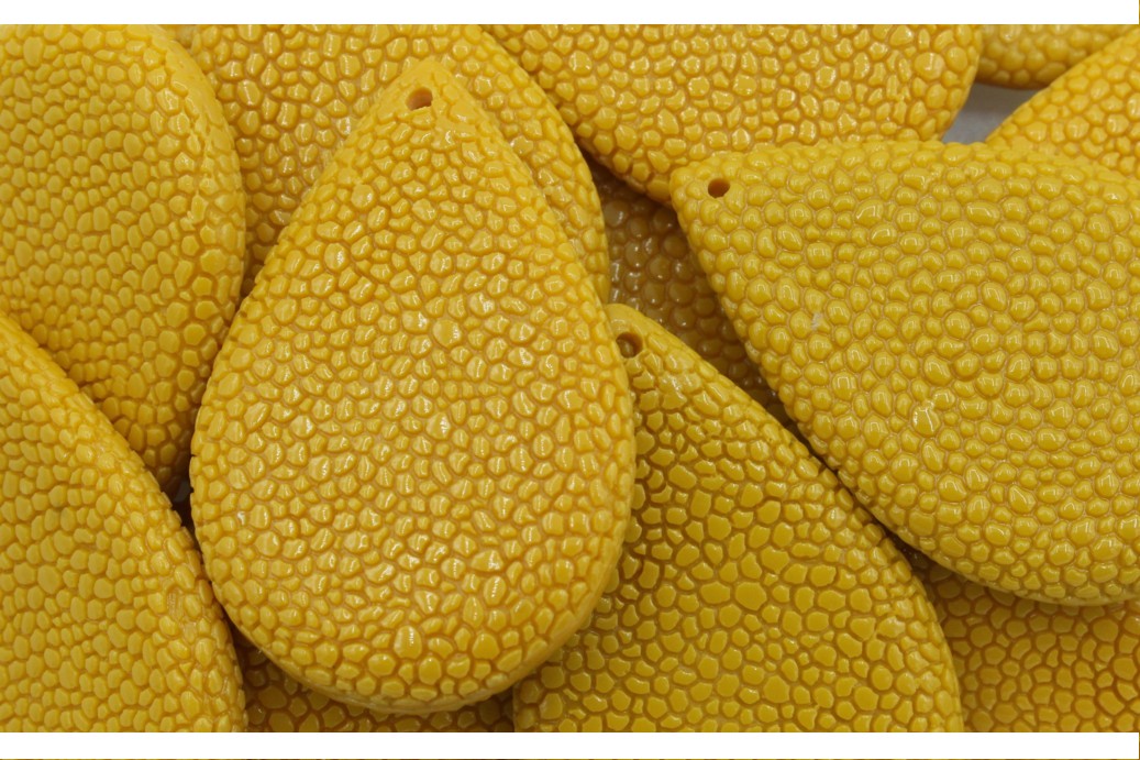 45 x 30mm Reconstituted Shell Drop – Mustard. Quality product.