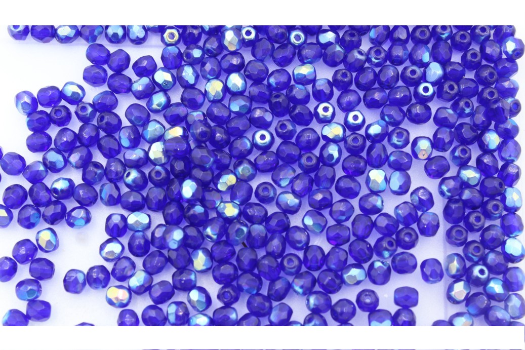 4mm – Czech Fire Polished – Faceted – Dk Sapphire AB. Price per piece. Glass bead. Czech made. Good quality.