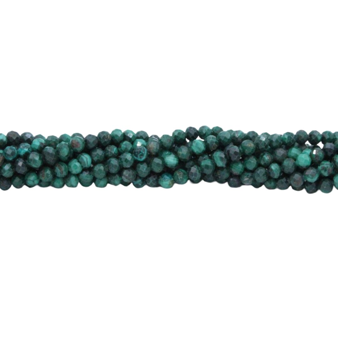 4mm Malachite – Round Faceted – 39cm Strand.