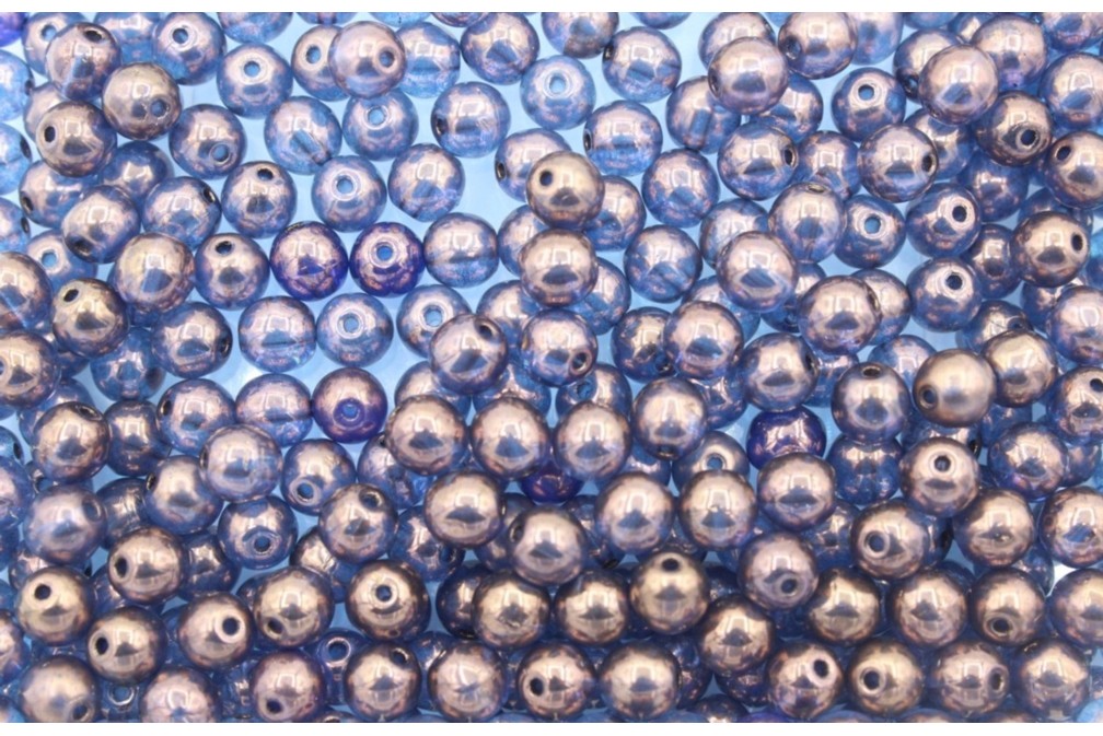 6mm – 2 Tone – Bronze / Lt Blue. Smooth round glass bead. Quality product. Made in the Czech Republic. Bead appears a solid metallic colour. Bead will then change colour when displayed in light.