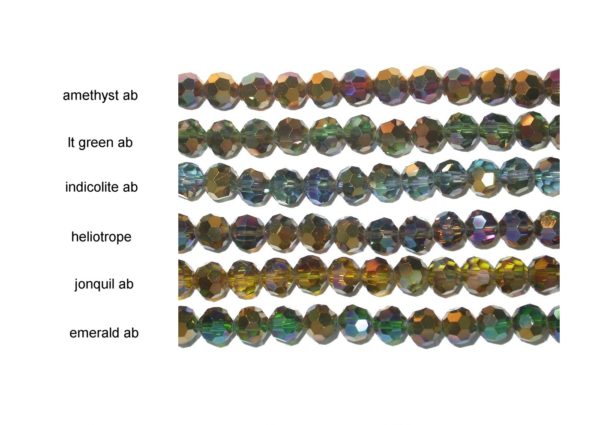 | Color | Amethyst AB, Emerald AB, Heliotrope, Indicolite AB, Jonquil AB, Light Green AB |