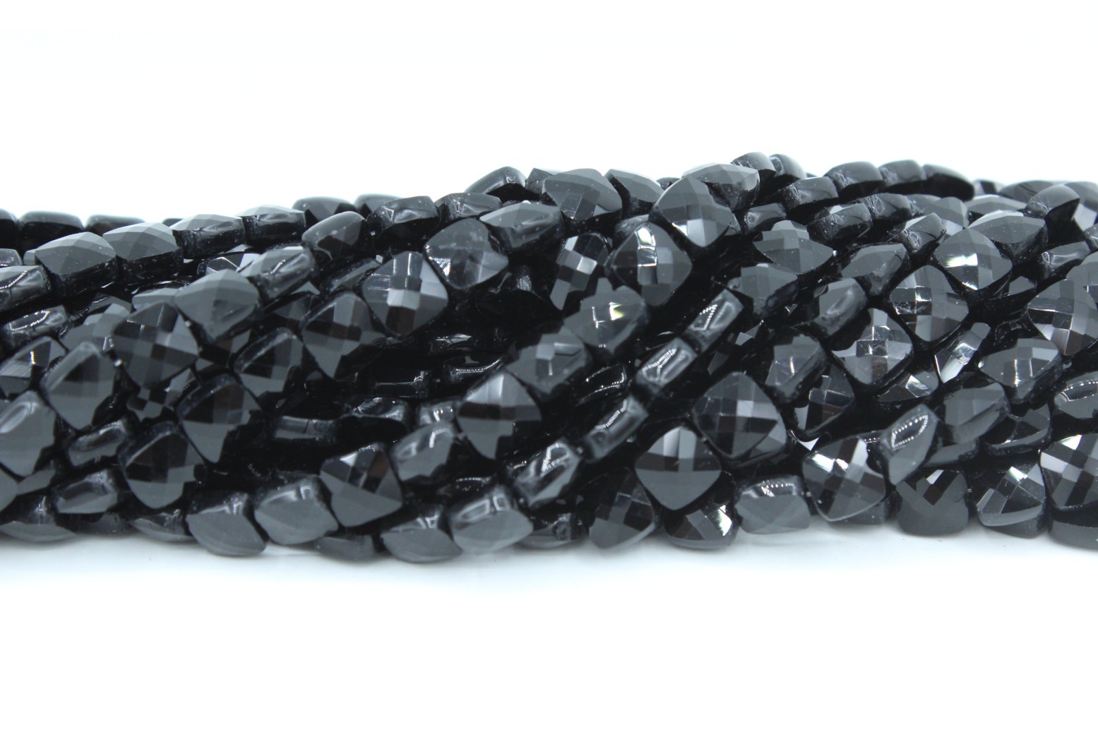6mm Flat Faceted Square - Black - 30cm Strand quantity