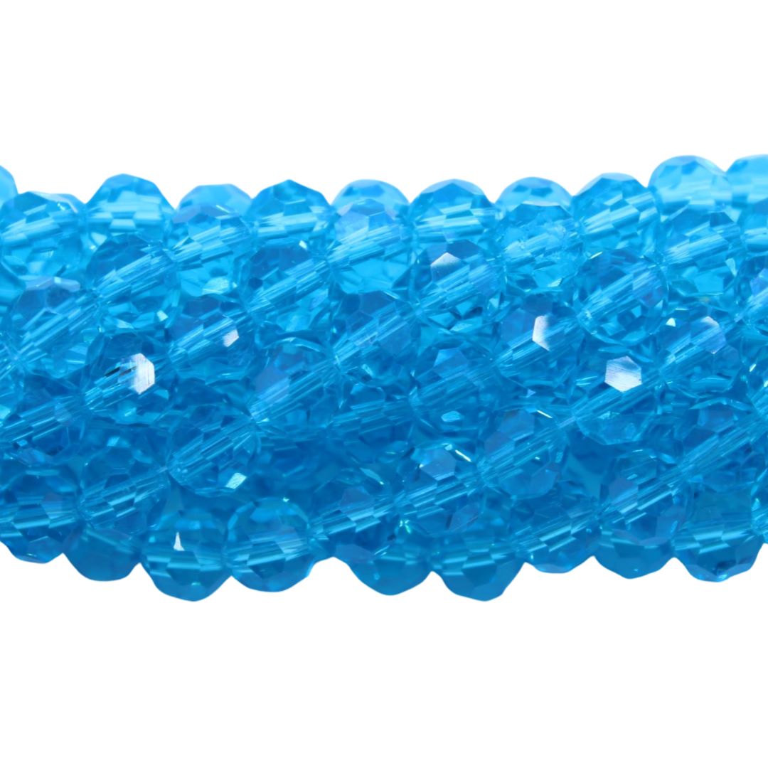 6mm – Round Faceted – Aqua – 50cm Strand.