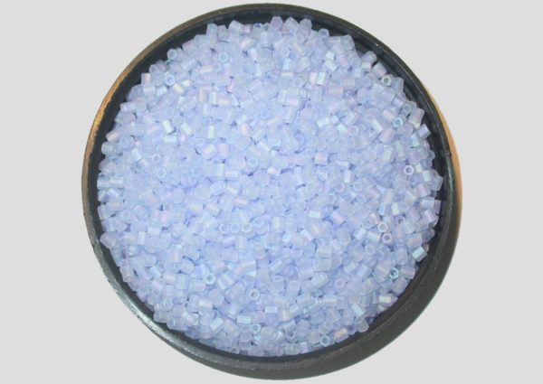 8/0 2 Cut – Lt Blue Frost AB – Price per gram. Matsuno. Made in Japan. 2 Cut Bugle. Approx 3 x 2.5mm in size. Glass beads. Frost Finish. Superior quality. Please contact us to purchase colours not displayed.