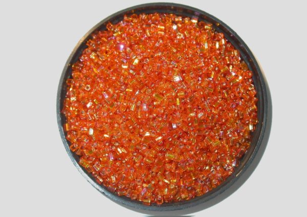 8/0 2 Cut – Orange Silverlined AB – Price per gram. Matsuno. Made in Japan. 2 Cut Bugle. Approx 3 x 2.5mm in size. Glass beads. Silverlined AB colours / silver lining the hole in bead. Superior quality. Please contact us to purchase colours not displayed.