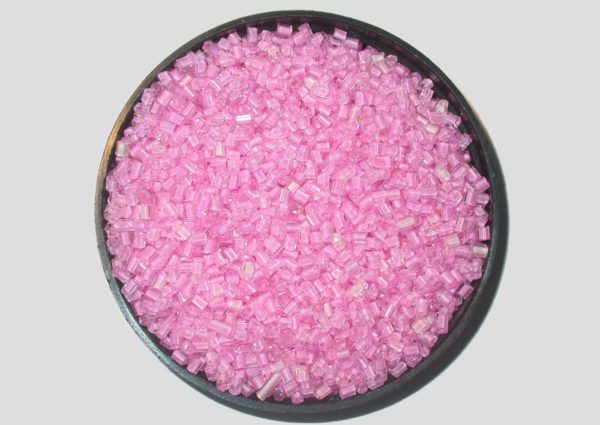 8/0 Bugle – Lt Pink Colourlined – Price per gram. Hex Cut. Approx 3 x 2mm in size. Glass beads. Colourlined colours / colour lining the hole in bead. Please contact us to purchase colours not displayed.